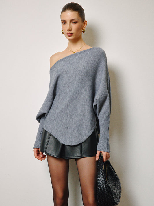 Büyük Boy Asimetrik Yakalı Paçalı Koyun Kol Kazak