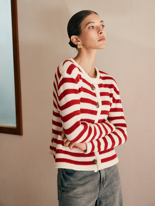 20% İndirimBisiklet Yaka Çizgili Jersey Hırka
