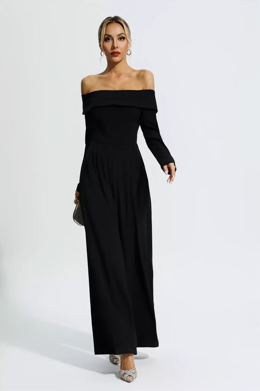28% İndirimCassidy Siyah Düşük Omuzlu Dökümlü Tulum