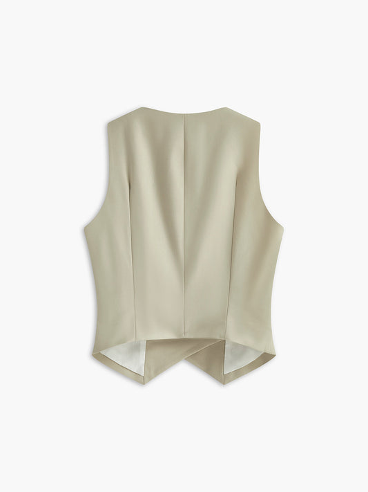 30% İndirimAsimetrik Gri Yeşil Düğmeli Kolsuz Yelek