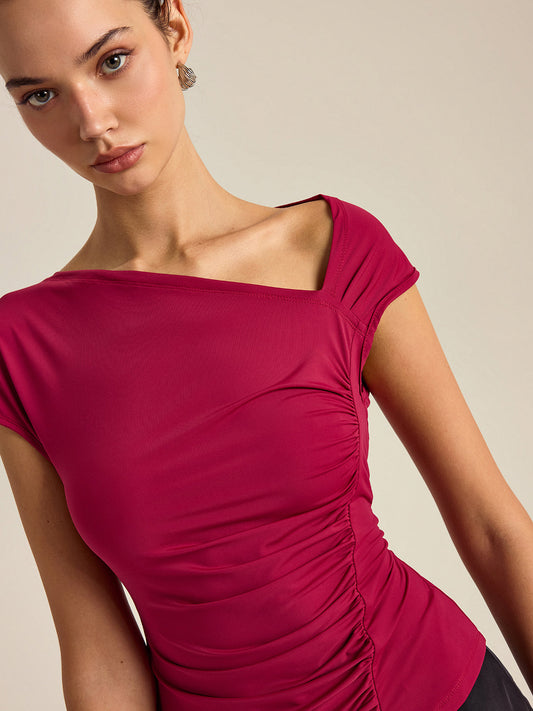 41% İndirimAsimetrik Etek Ucu Kırışık Tişört