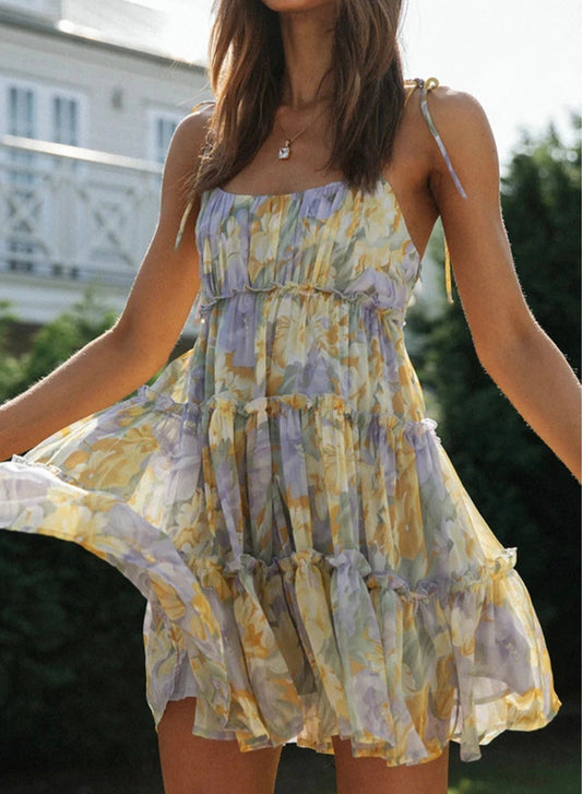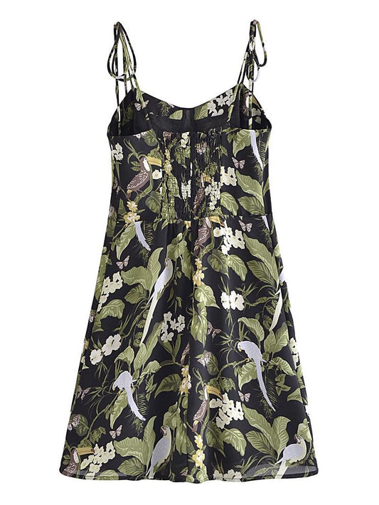 26% İndirimZoe Tropikal Baskılı Mini Şifon Slip Elbise