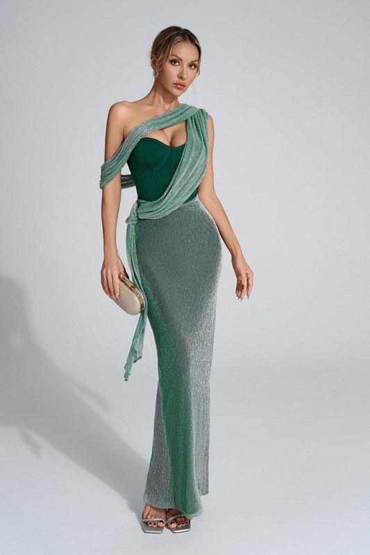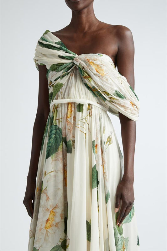 25% İndirimZanna Baskılı Tek Omuz Flare Maxi Elbise