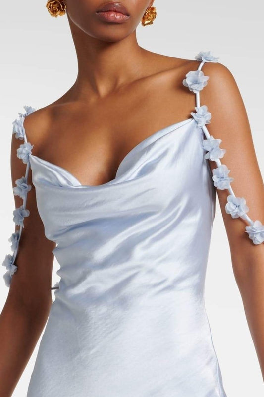 30% İndirimZeytinyağı Çiçek Aplikeli Saten Maxi Elbise