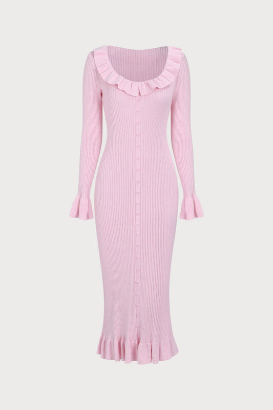 40% İndirimValerie U Yaka Fırfırlı Midi Triko Elbise