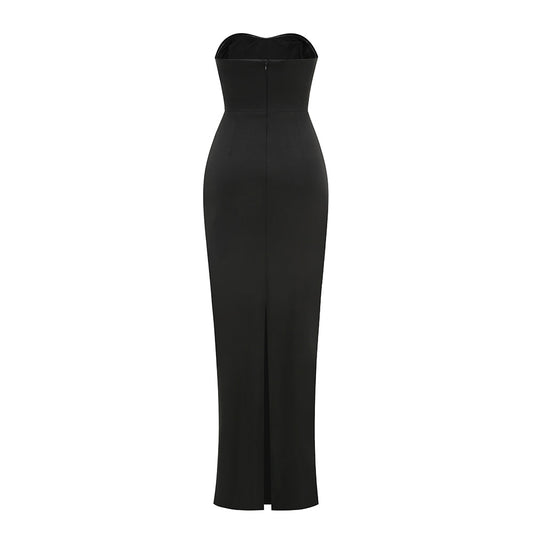Valentina Kalp Şeklinde Straplez Saten Mini Elbise