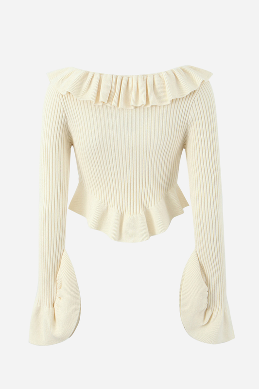 24% İndirimUzun Kollu Fırfırlı Triko Hırka