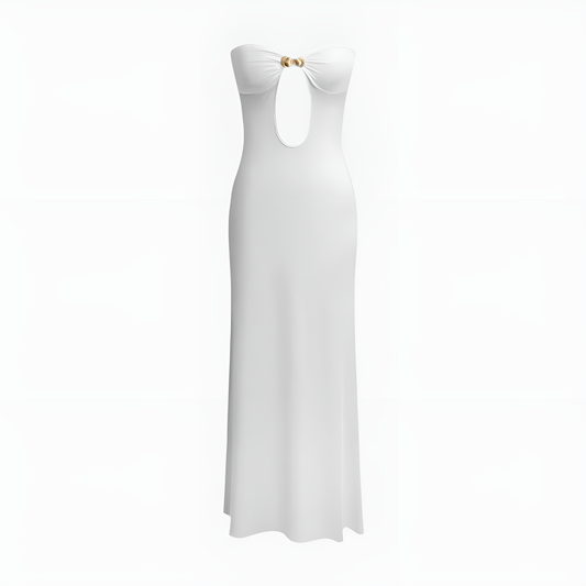 Trancos Toka ve Göğüs Detaylı Uzun Elbise