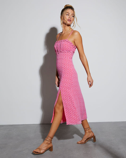 17% İndirimSheila Baskılı Yüksek Yırtmaçlı Uzun Elbise