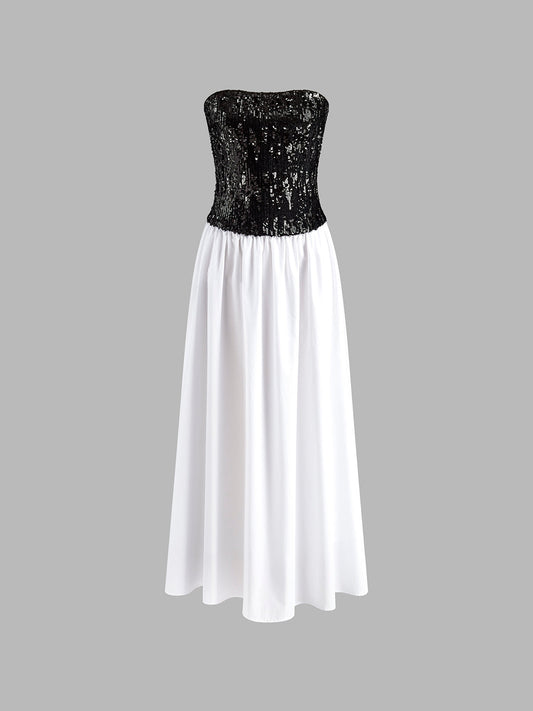 20% İndirimPliseli Payetler Tüp Uzun Elbise