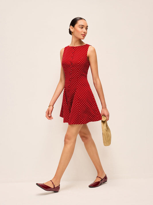 33% İndirimPolka Dot Fermuarlı Yuvarlak Yaka Kısa Elbise