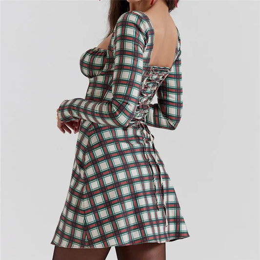 Quintina Beyaz Kareli Mini Gömlek Elbise