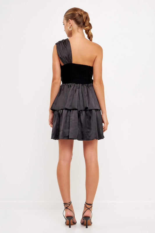 21% İndirimPaula Tek Omuz Papyonlu Katlı Mini Elbise