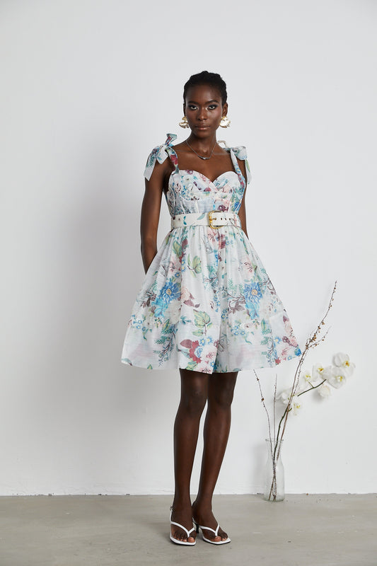 15% İndirimOphelia Çiçek Desenli Kuşaklı Mini Elbise