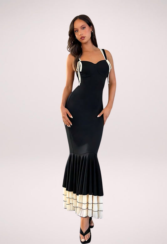 Nice Kontrast Geçişli Sırt Detay Uzun Elbise
