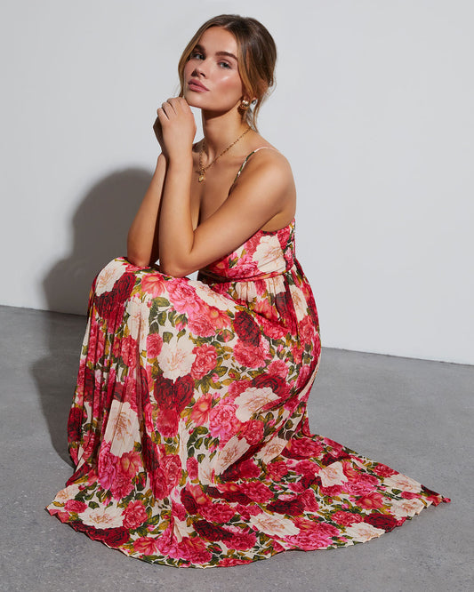 32% İndirimNaomie Çiçekli Pileli Uzun Elbise