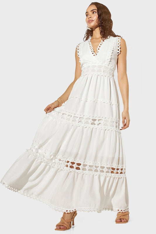 18% İndirimOymalı Çiçek Straplez Maxi Elbise