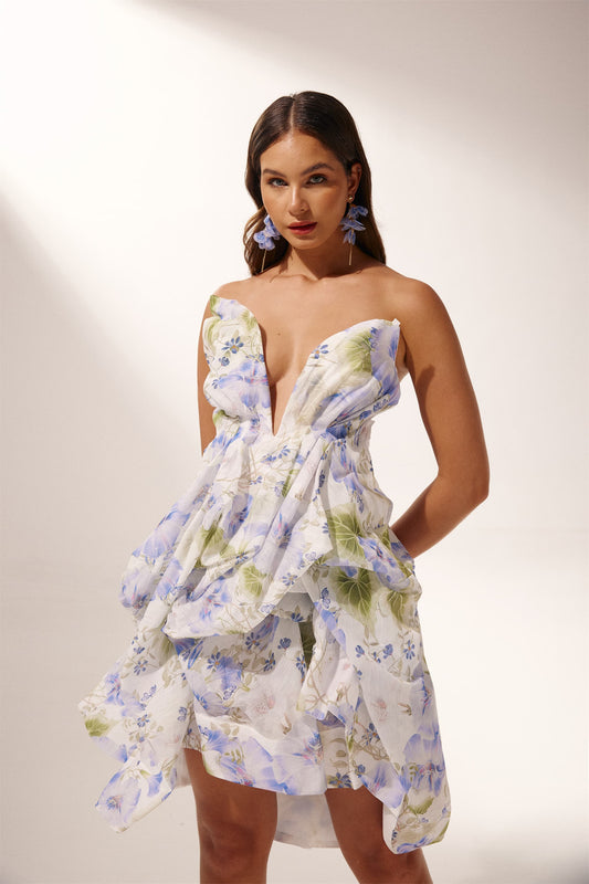 27% İndirimMonica Çiçek Baskılı Fırfırlı Mini Elbise
