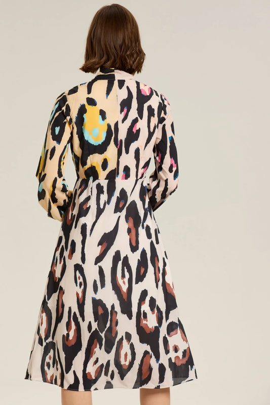 29% İndirimMonica Leopar Desenli Blok Renk Midi Elbise
