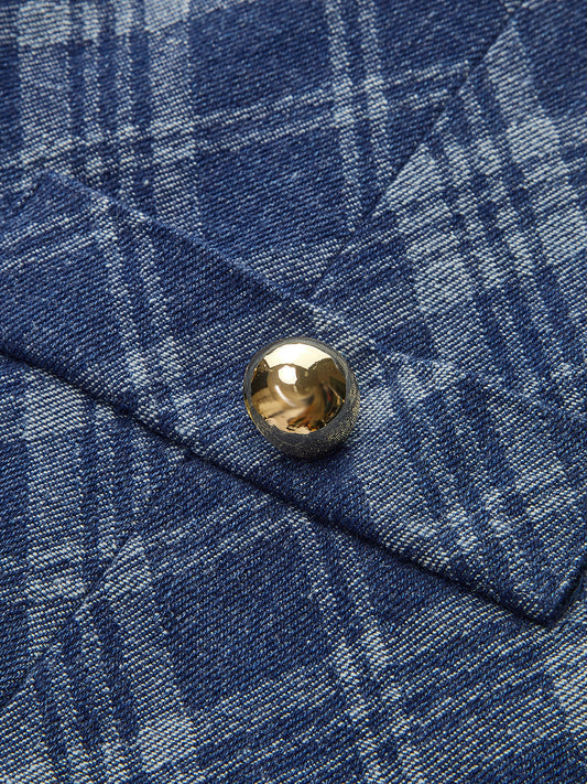 Metal Düğmeli Yuvarlak Yaka Dekor Cepli Kot Elbise
