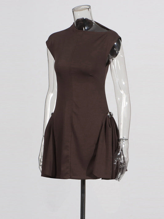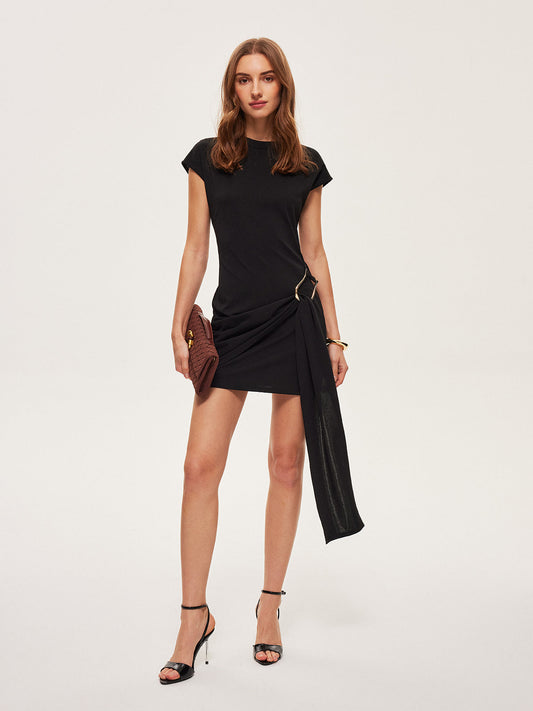 24% İndirimMetal Bağcıklı Yaka Fermuarlı Pileli Kısa Elbise