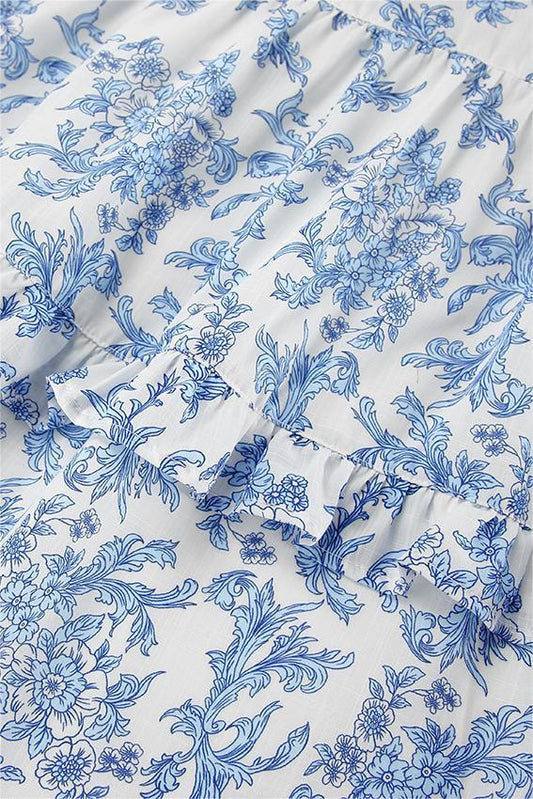 Lila Çiçekli Fırfırlı Puf Kol A Kesim Mini Elbise