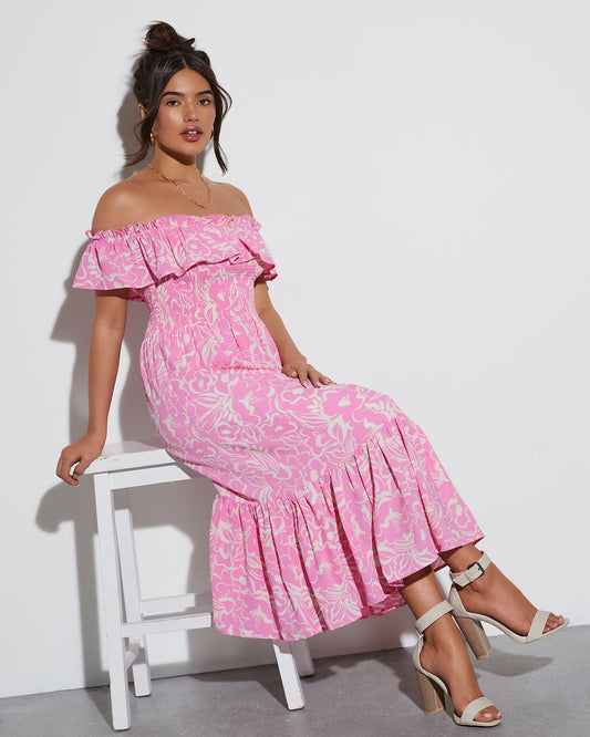 23% İndirimLindsay Düşük Omuz Fırfırlı Maxi Elbise