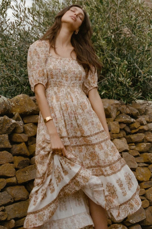 21% İndirimLibby Baskılı Büzgülü Korsajlı Geniş Midi Elbise