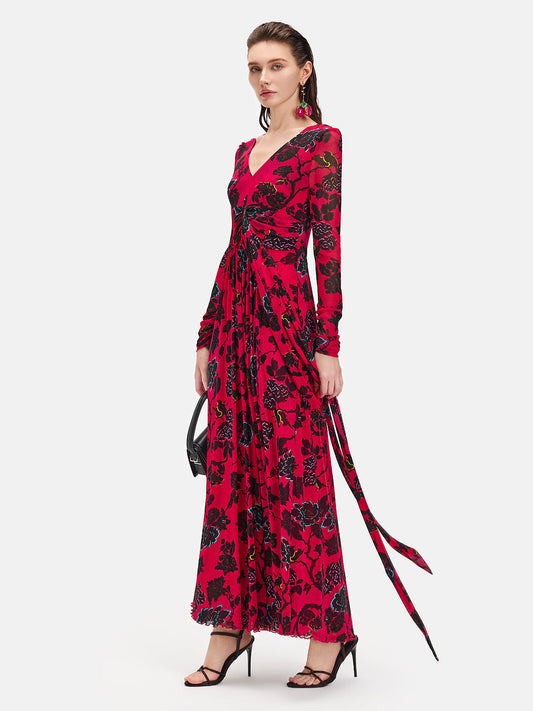 31% İndirimKırmızı Uzun Kollu Çiçekli Maxi Elbise