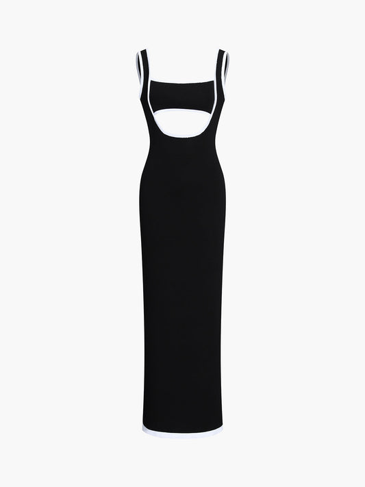 17% İndirimKontrast Trim Bölünmüş Kolsuz Elbise
