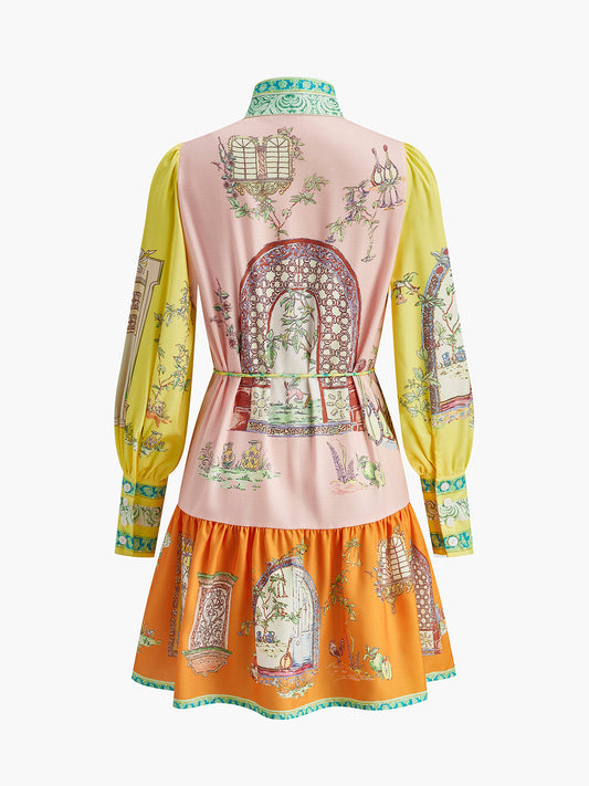 Khloe Uzun Kollu Sırt Detaylı Etnik Desenli Mini Elbise