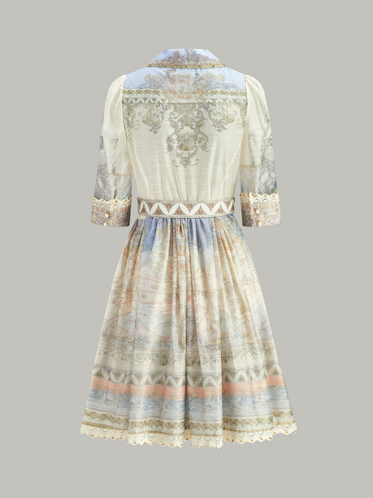 43% İndirimKemerli Baskılı Balıkçı Yaka Elbise
