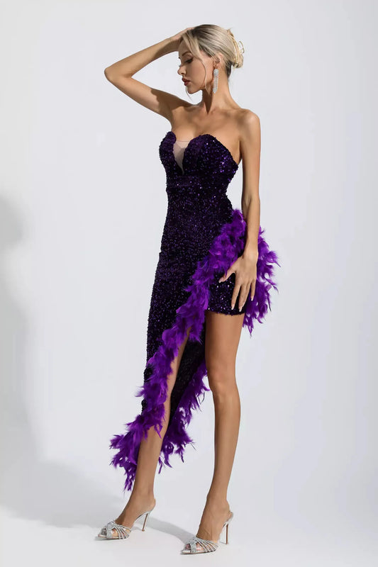 20% İndirimKira Mor Payet Tüylü Maxi Elbise