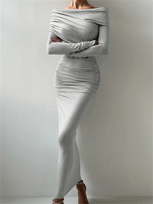 49% İndirimKayık Yaka Yanları Büzgü Dikişli Maxi Elbise
