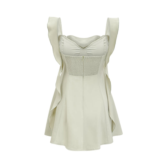 33% İndirimKrem Fırfırlı Kolsuz Uzun Elbise