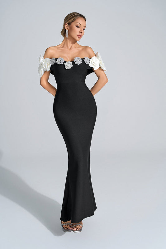 30% İndirimKathryn Siyah Çiçekli Uzun Elbise