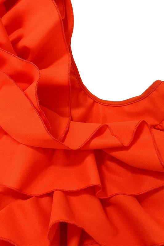 21% İndirimKatlı Fırfırlı V Yaka Mini Elbise