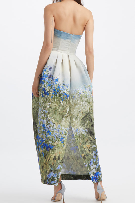 19% İndirimJanice Çiçek Baskılı Straplez Uzun Elbise