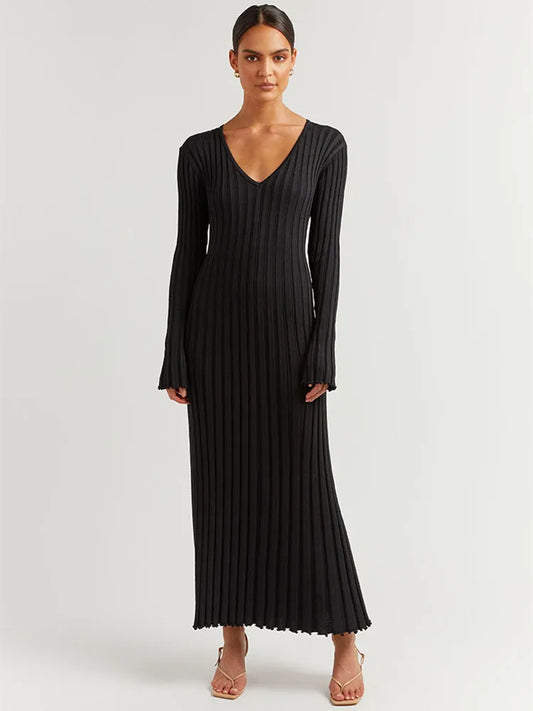 42% İndirimGeniş Fitilli V yaka Maxi Elbise
