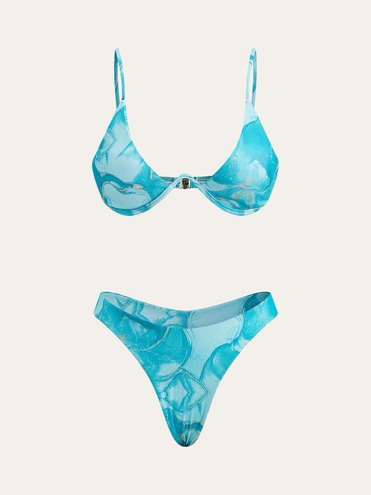 Bağcıklı Yan Etekli Çiçekli Bikini Takımı