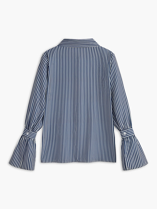 Çizgili Sırtı Açık Fiyonklu Gömlek