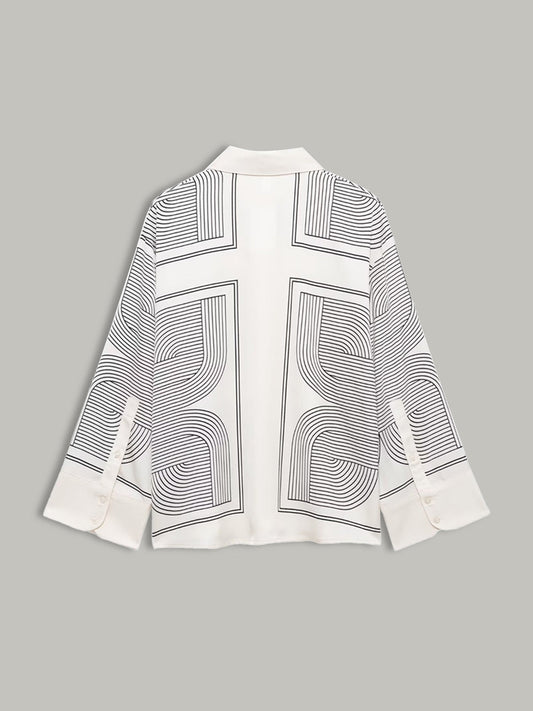Kadın Kalp Baskılı Düğmeli Gömlek