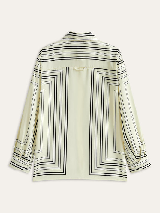 Pamuk Ve Keten Çizgili Bol Gömlek