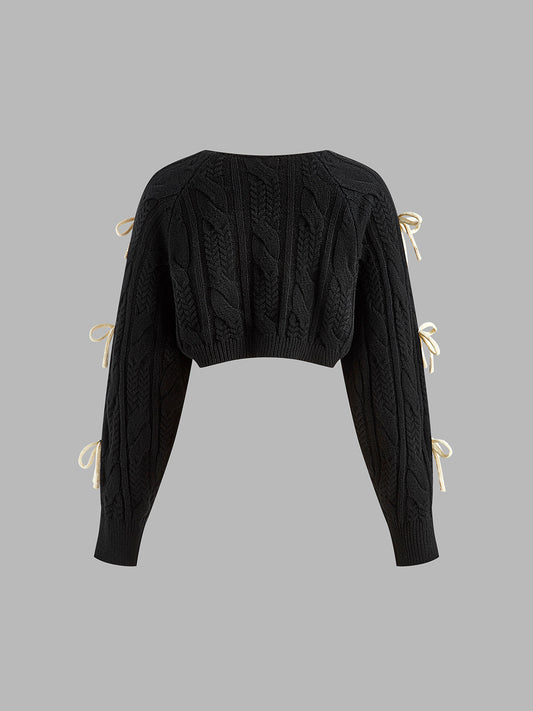 Nakışlı-Fiyonklu Düğmeli Kısa Hırka