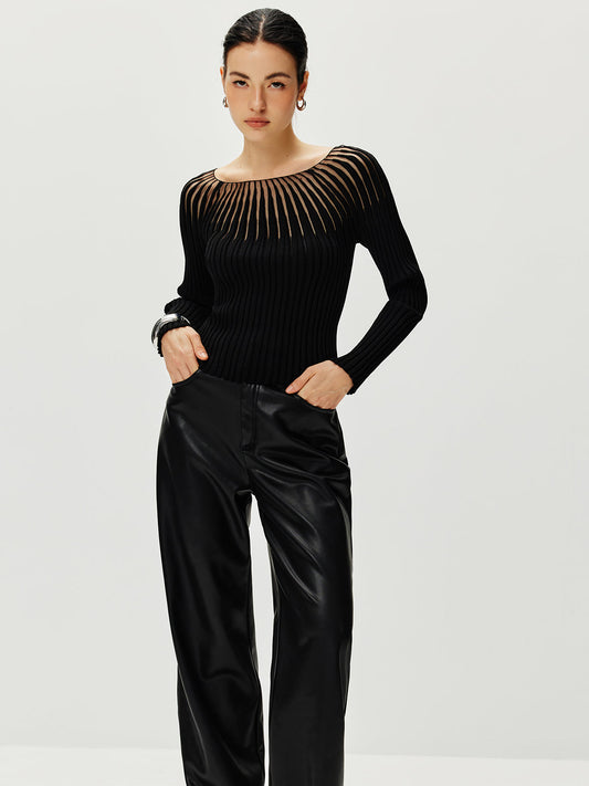 Büyük Boy Yarı Şeffaf Uzun Kollu Kazak
