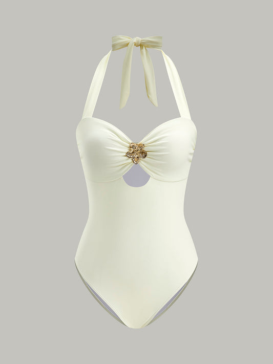 Metal Halkalı Kesimli Yular Tek Parça Mayo
