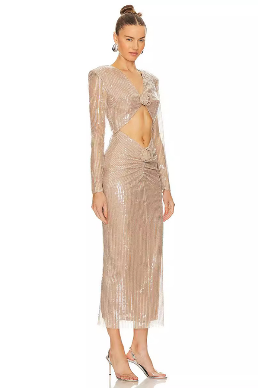 Babette Mavi Halter Yaka Payetli Midi Elbise