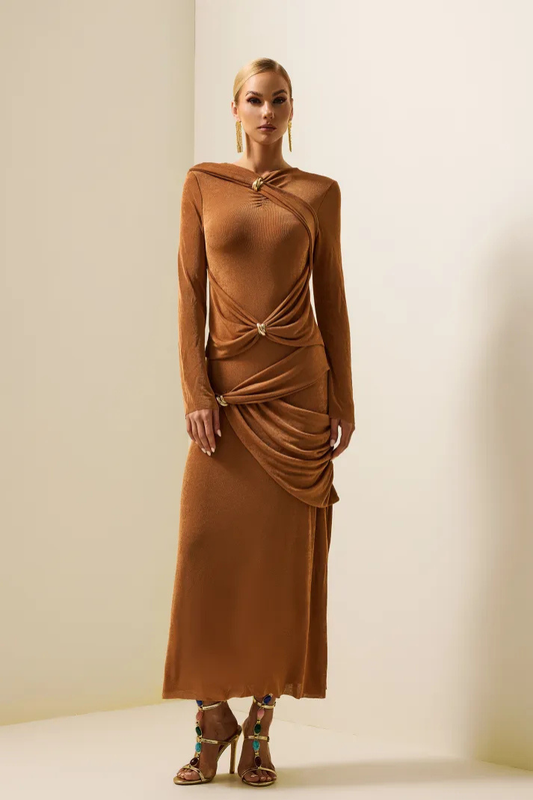 Leisure Mock Yaka Uzun Kollu Midi Elbise
