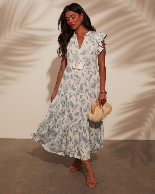 Blossom Coast Çiçek Fırfırlı Midi Elbise