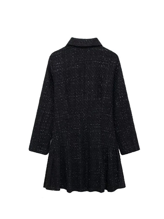 Eugénie Nötr Pilili Fırfırlı Mini Elbise